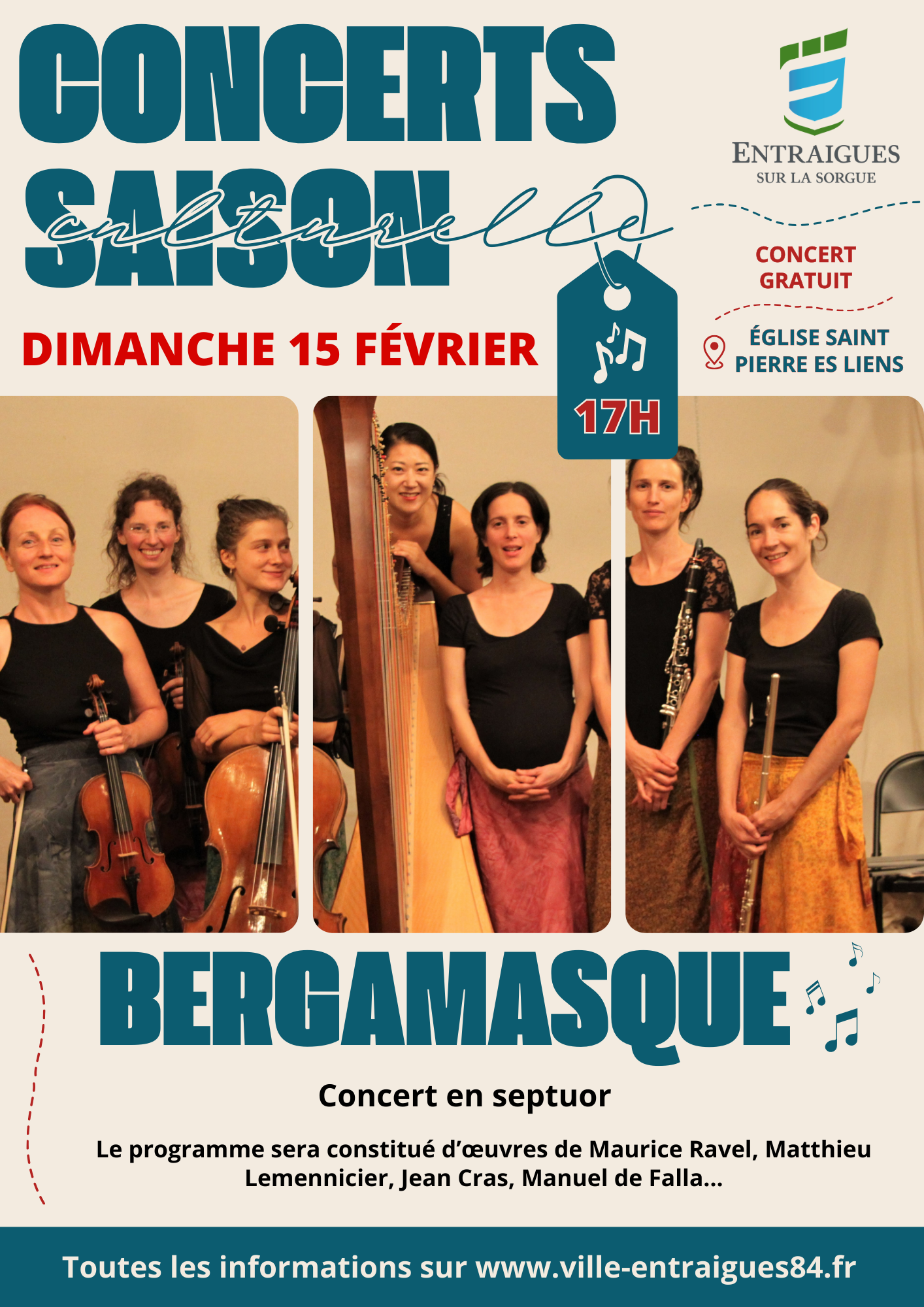15 février- - 17h00 - 19h00 Concert septuor avec l’Ensemble Bergamasque Eglise de St Pierre es Liens Concert avec l'Ensemble Bergamasque : Ravel Cras Lemennicier De Falla